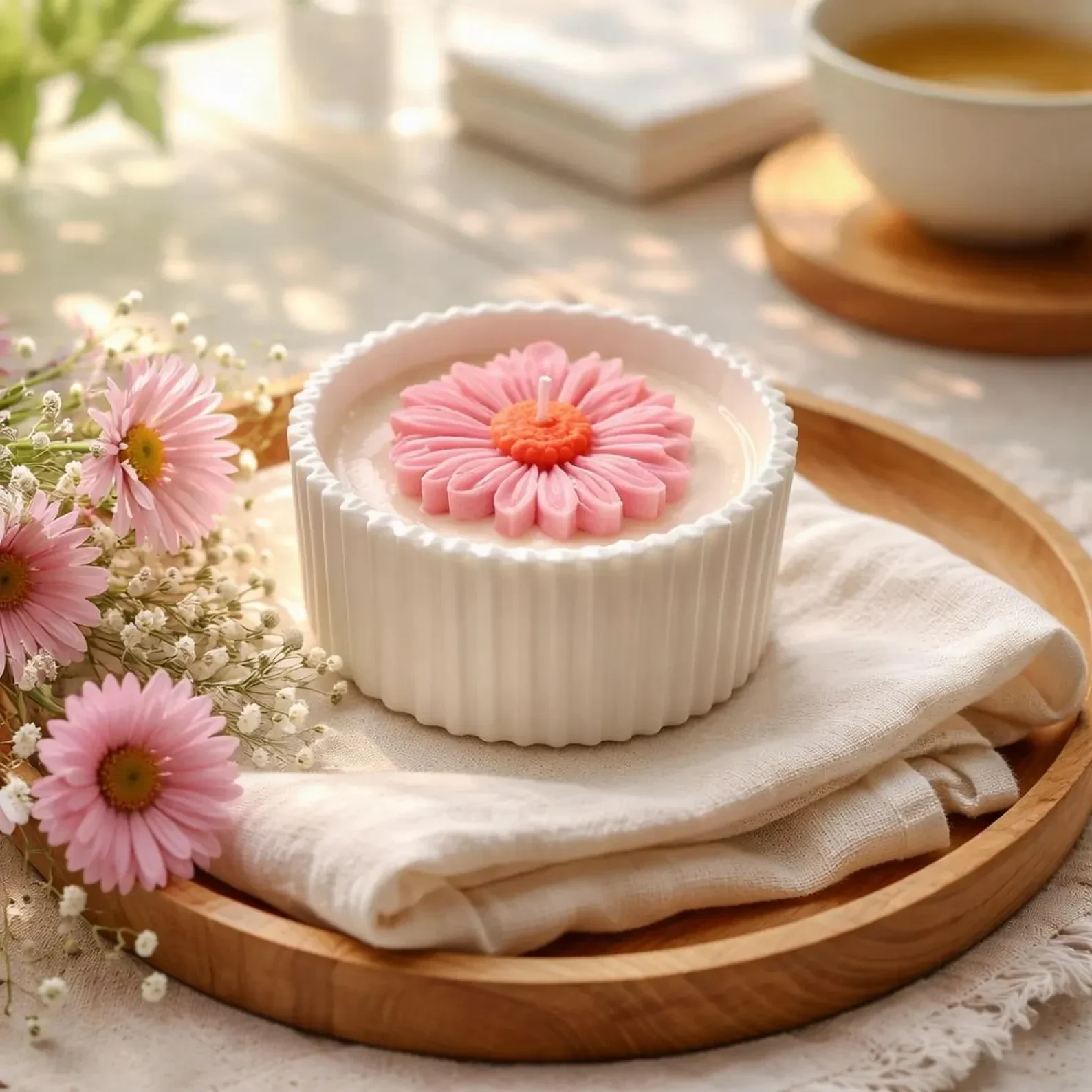 Apportez une touche florale et artisanale à votre maison avec cette bougie marguerite artisanale, réalisée avec soin par La Fabrique de Mélanie.